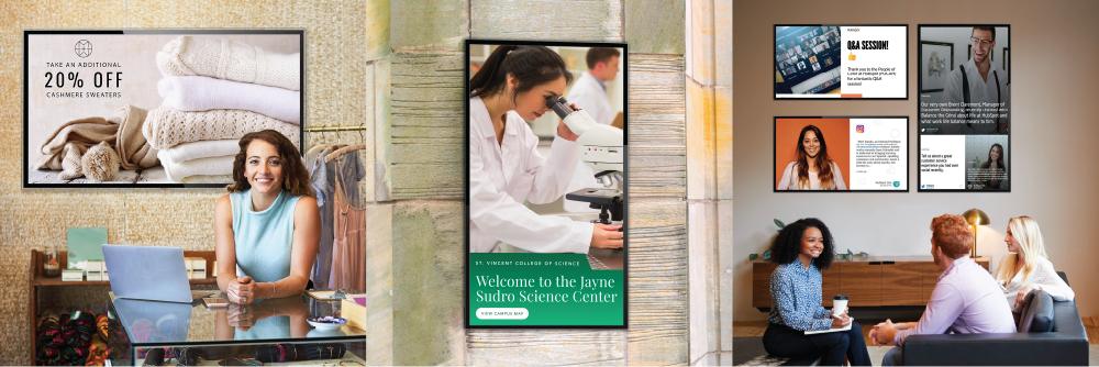 Besides being engineered for durability, customizability, security enhancements, and the specialized features necessary in professional settings, purpose-built digital signage devices are designed to: