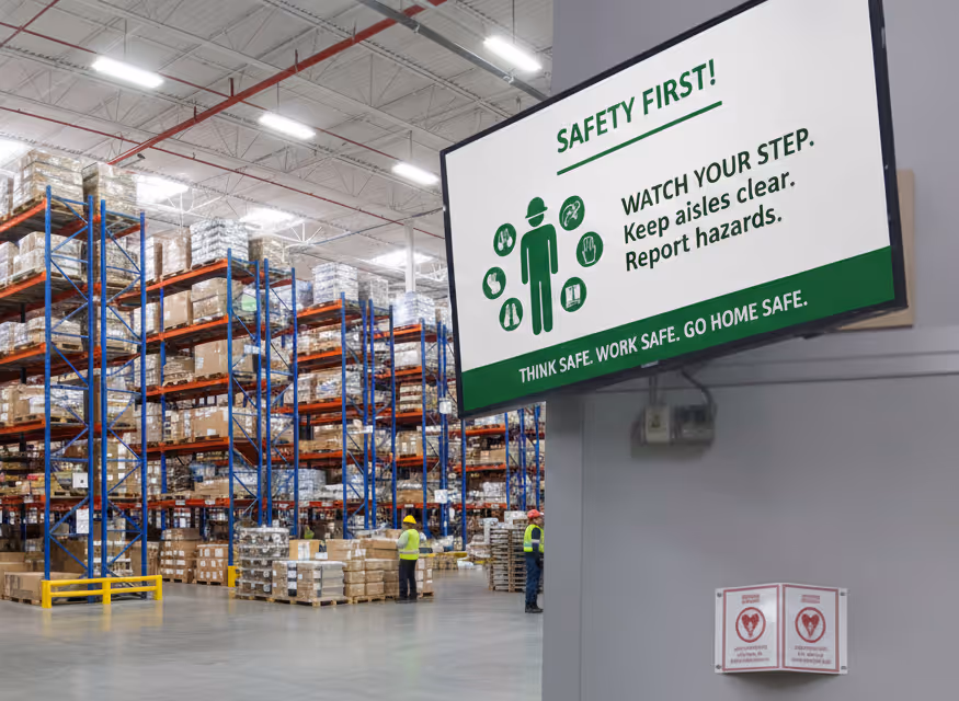 Use screens to reinforce safety guidelines and promote ongoing training.
